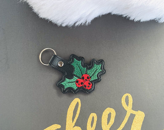 Christmas Holly Skulls Snap Tab & Eyelet Fob