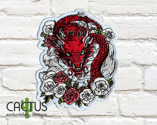 Dragon with Flowers Patch Embroidery Design