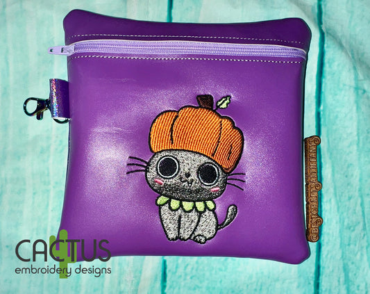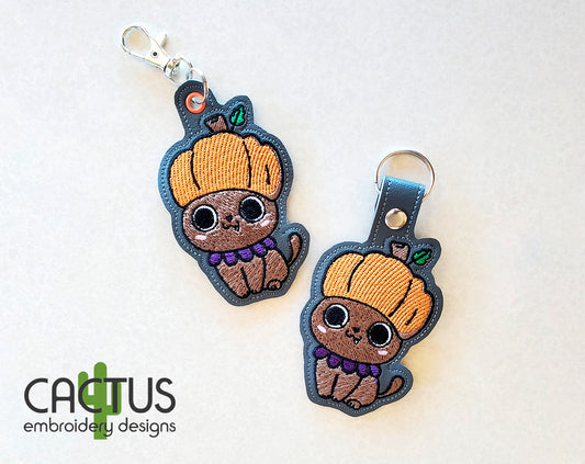 Cat in the Pumpkin Hat Snap Tab & Eyelet Fob