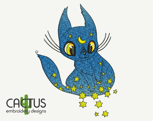 Celestial Cat Embroidery Design