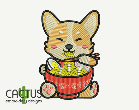 Doge with Ramen Embroidery Design