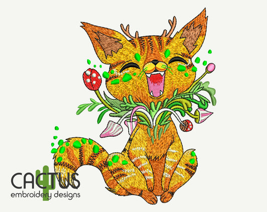 Mushroom Cat Embroidery Design