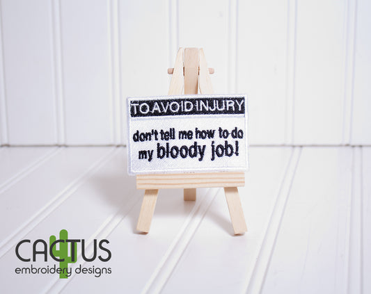 TO AVOID INJURY Door Sign & Patch Embroidery Design