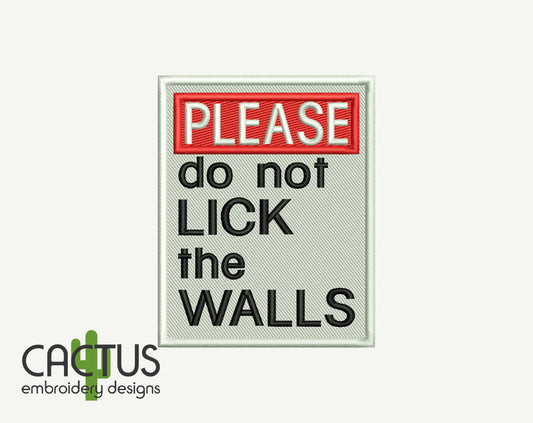 do not LICK the WALLS Door Sign & Patch Embroidery Design