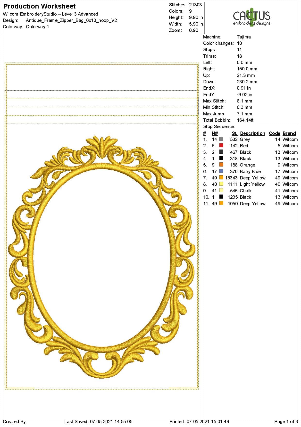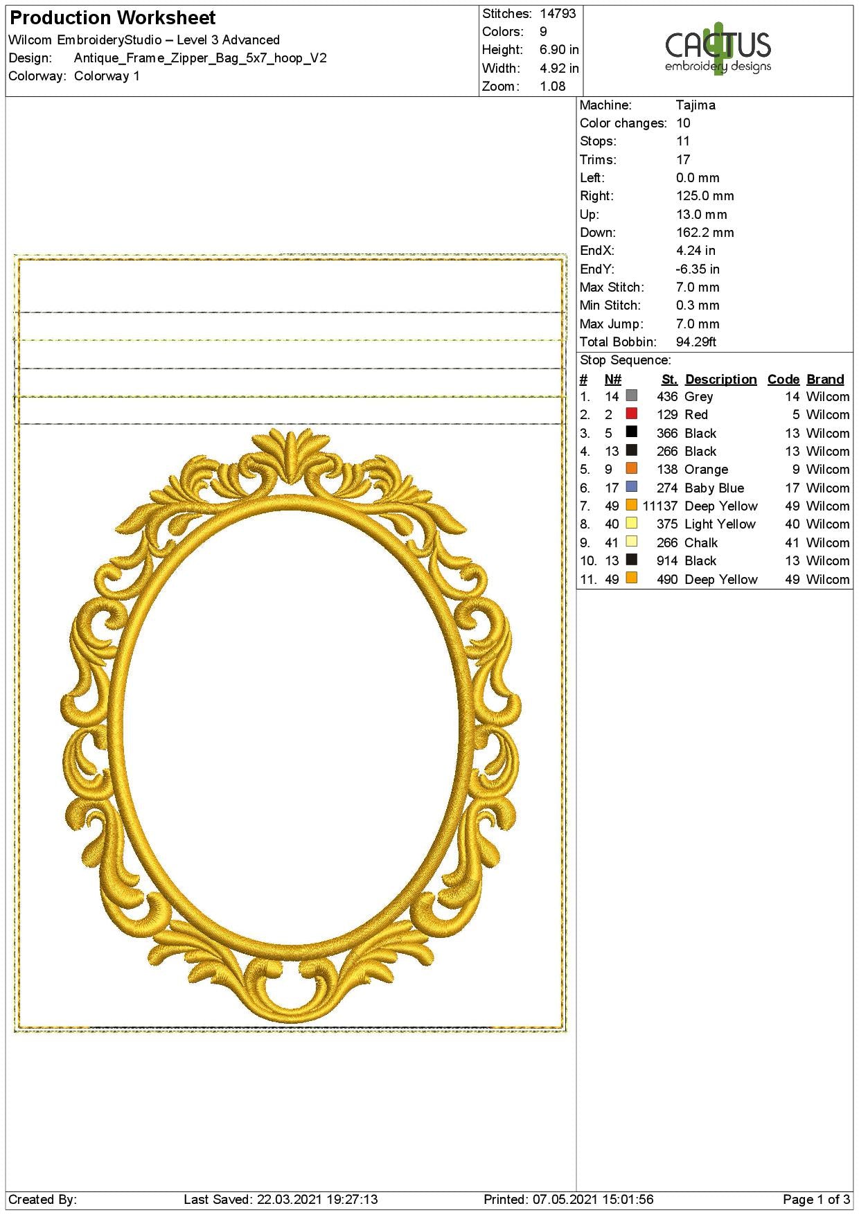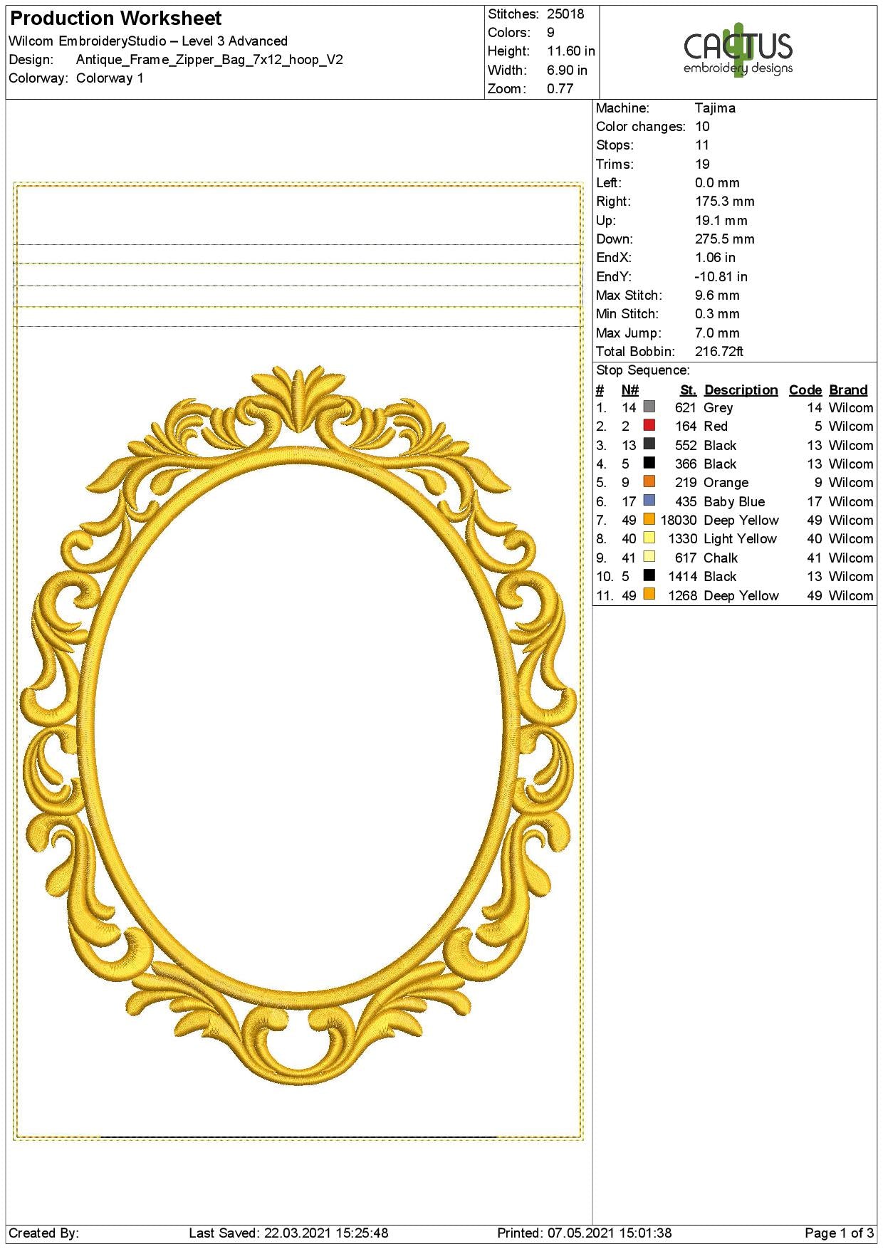 Embroidery designs includes such sizes and thread colors: