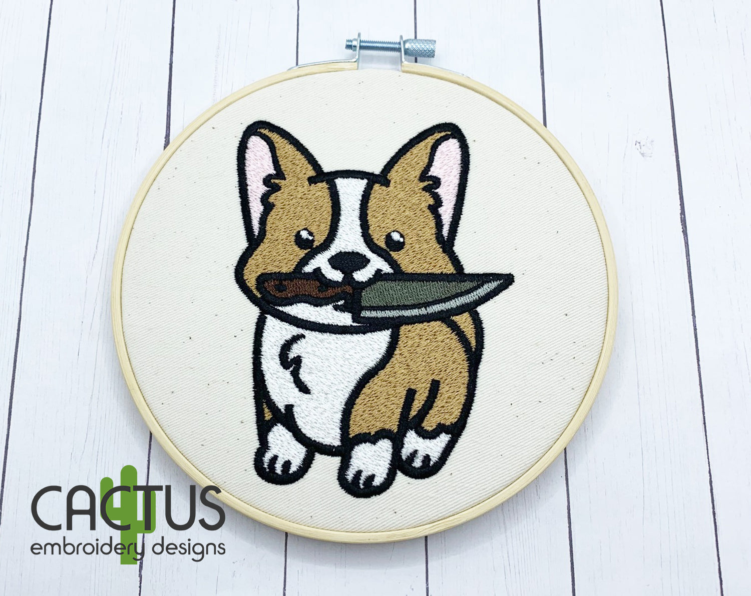 Corgi with a Knife Patch Embroidery Design