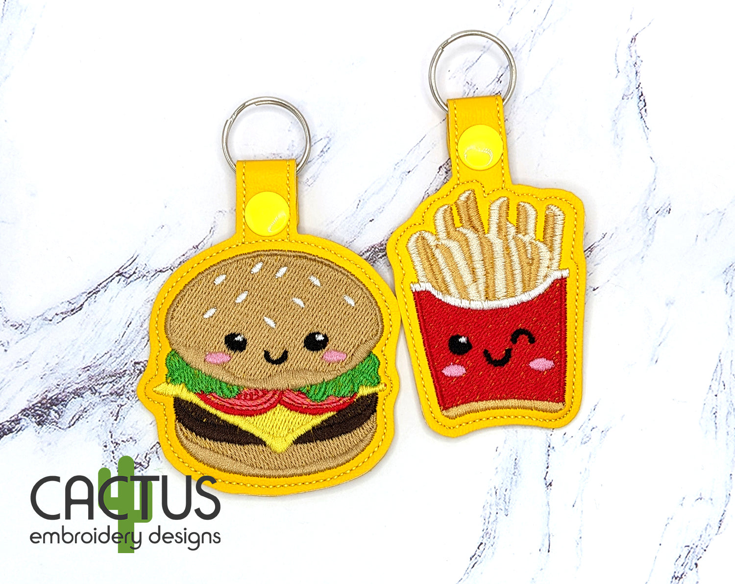 Perfect Match Burger & Fries Eyelet Fob, Snap Tab & Feltie