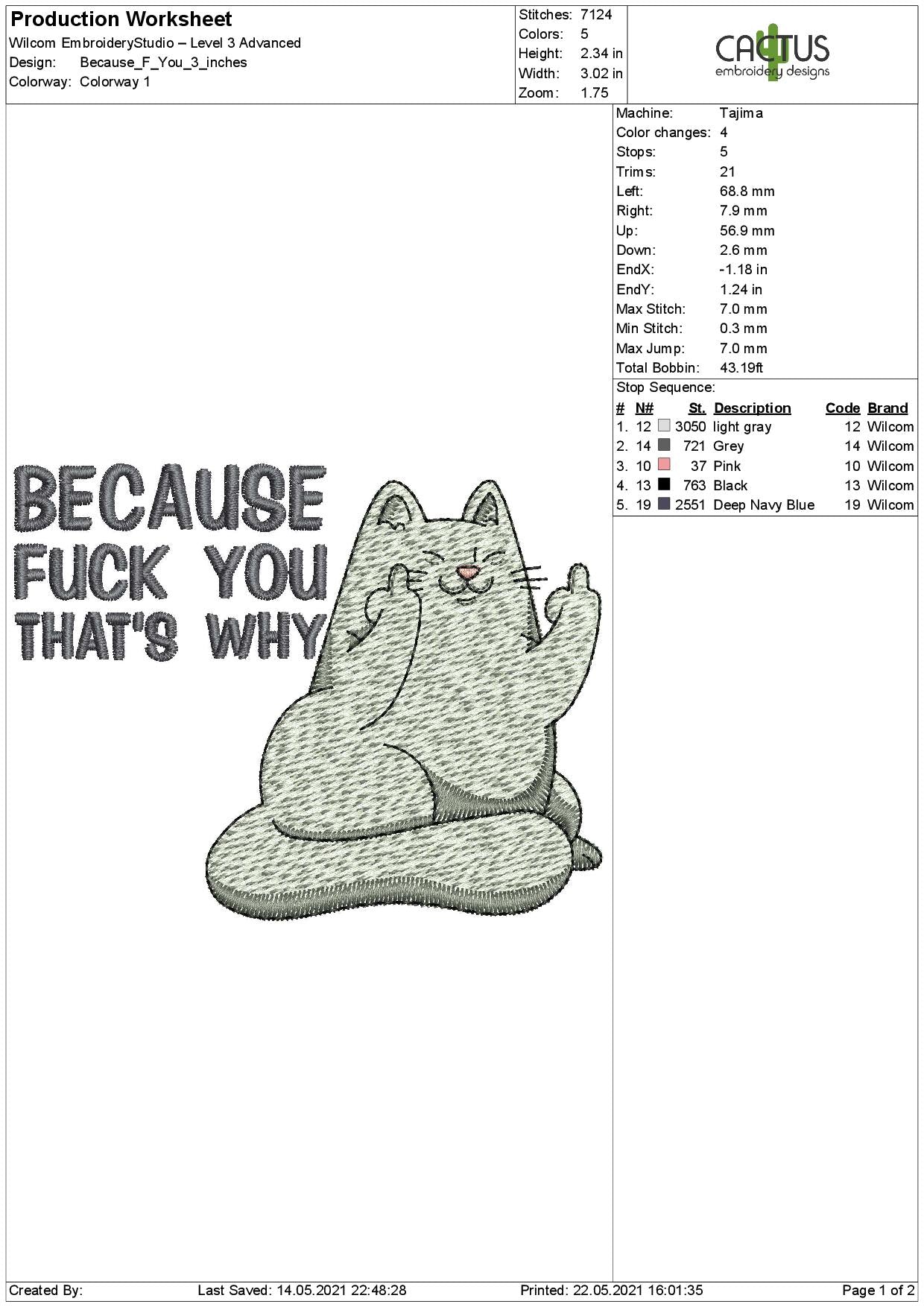 Rude Catto Embroidery Design